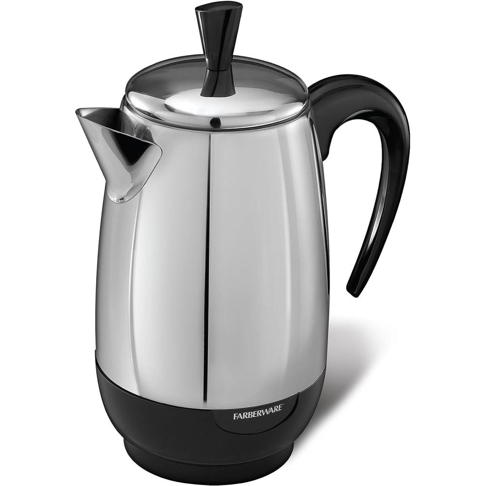 Farberware 12 Cup Electric Coffee Percolator, Coffee Maker with Stainless Steel Basket, Automatic Keep Warm, No-Drip Spout(8-Cup)