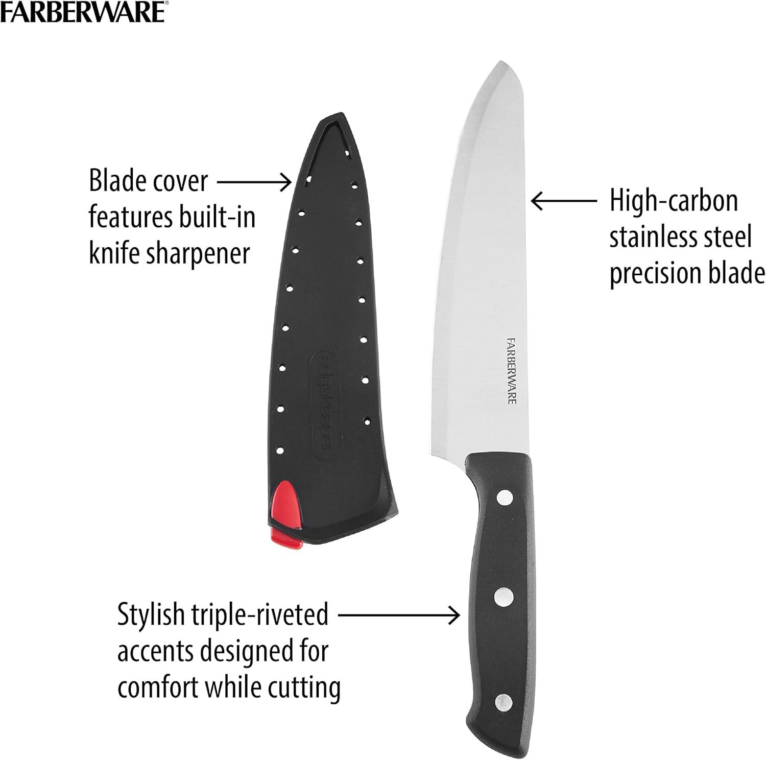 Farberware Edgekeeper Self-Sharpening Triple Riveted Chef Knife Set, 6-Piece, Black(Chef Knife Set)