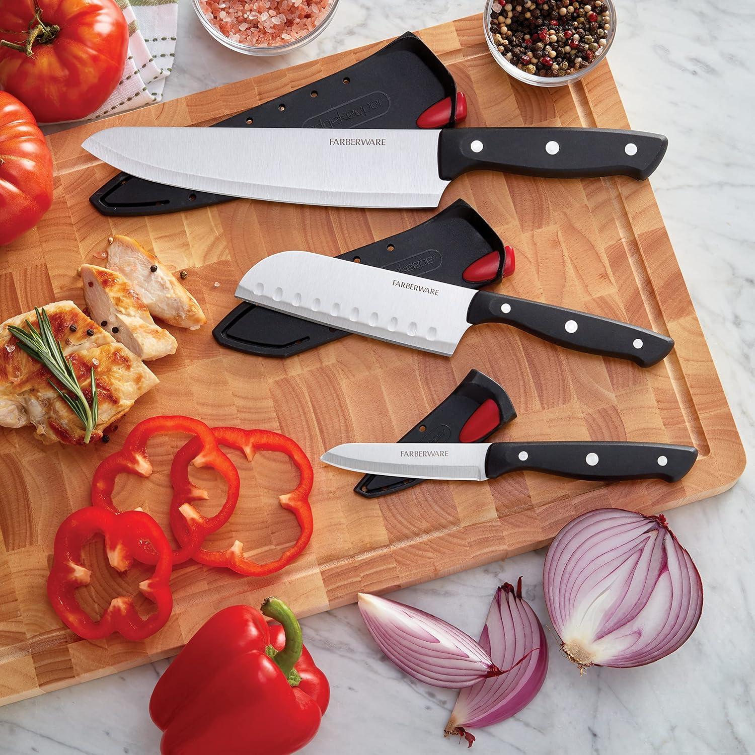 KITCHEN ESSENTIALS: This Farberware 6-Piece Self-Sharpening Triple Riveted Chef Knife set is perfect for all food prep tasks.